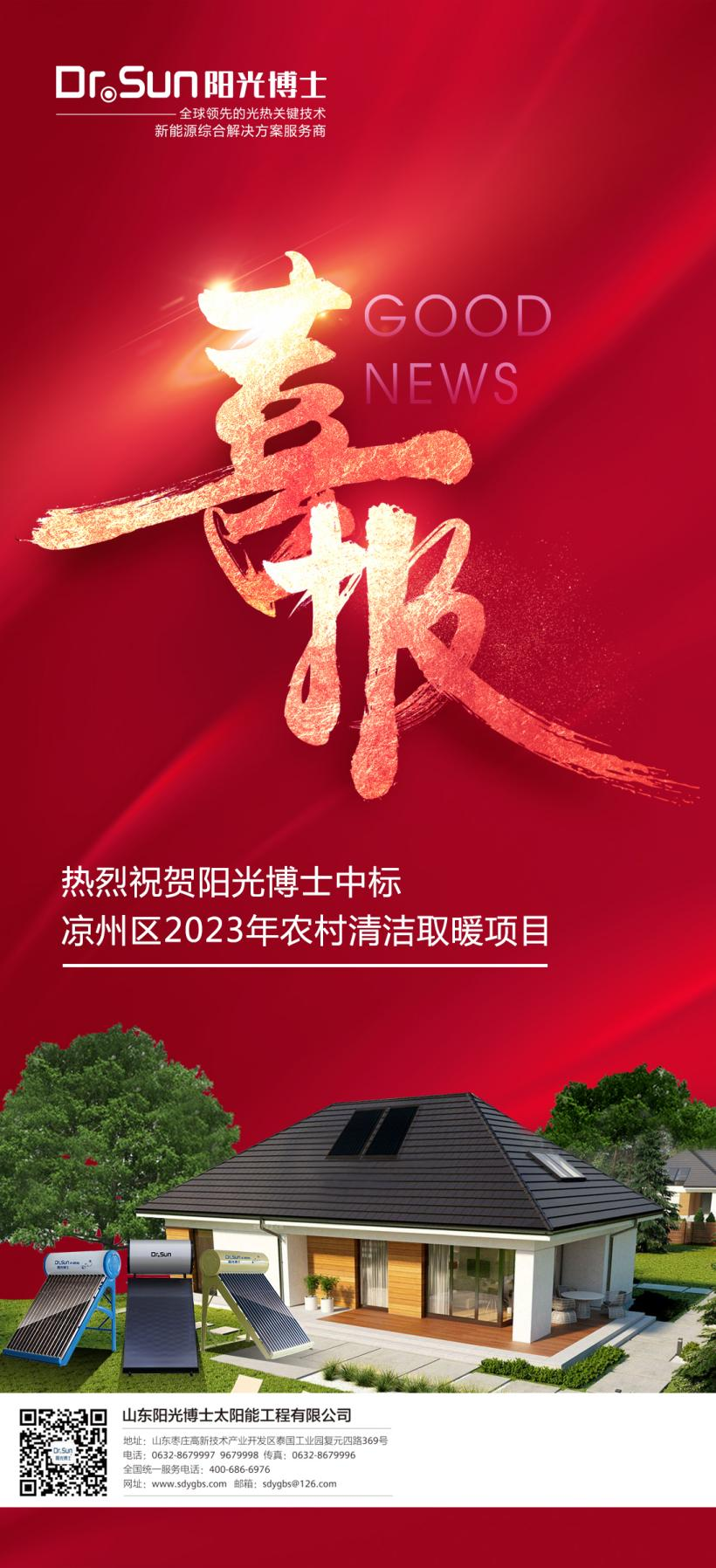 陽光博士憑借優(yōu)質(zhì)的產(chǎn)品質(zhì)量,過硬的技術能力,良好的市場口碑,在眾多競爭對手中脫穎而出,成功中標涼州區(qū)2023年農(nóng)村分散農(nóng)戶清潔取暖改造項目。